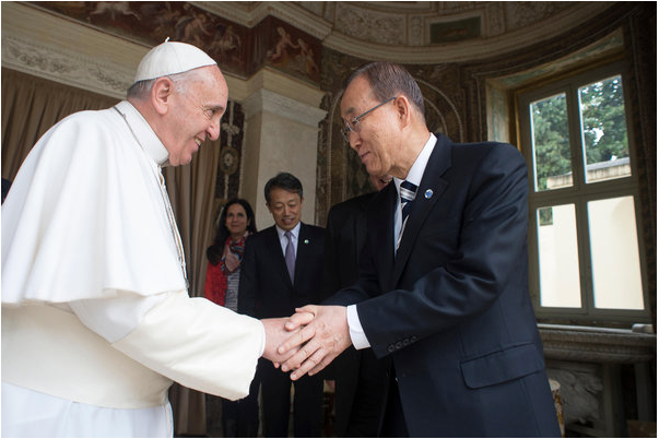 In them meantime – wrap your laughing gear around this. Last Tuesday, Secretary General Ban Ki-moon of the UN trotted over to the Vatican and he and the Pope had a bit of a pow-wow session on climate change and its impact on the poor of the world.